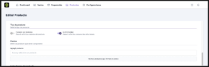 3. En la pantalla Editar Producto, ubicá la sección Tipo de producto.