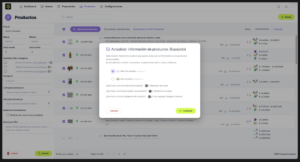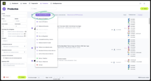 Esta función te permite crear productos de forma masiva cargando un archivo de Excel con el formato requerido.